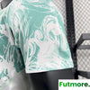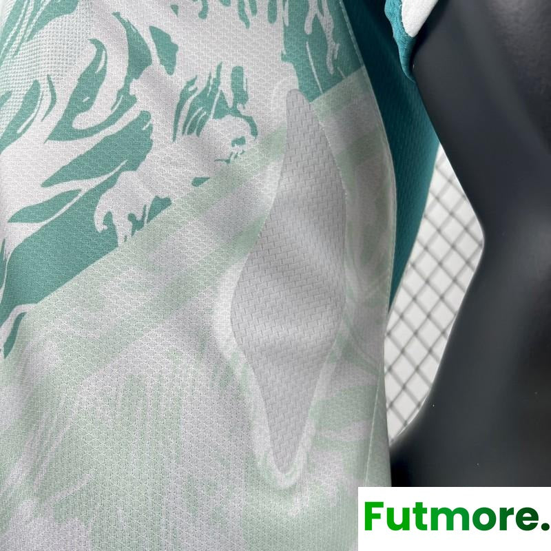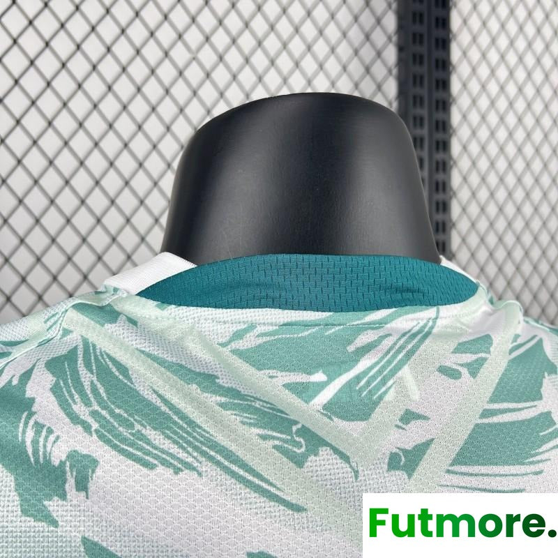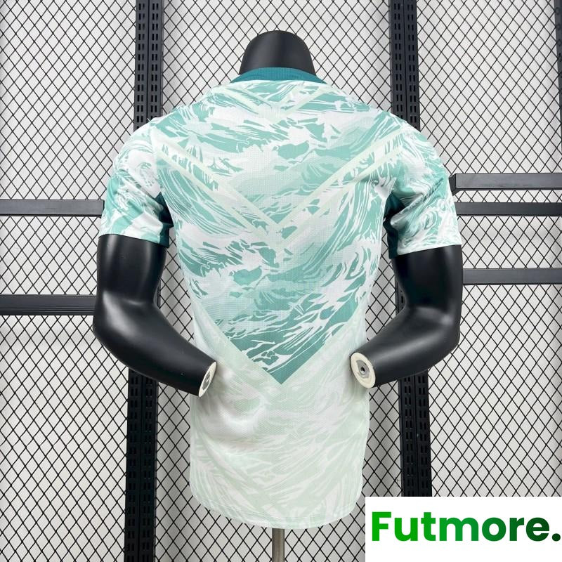 Jerseys labeled “Player Version” in the title are identical to the ones worn by professional players on the field. They feature a slimmer, athletic fit and are made with lighter, more elastic, and highly breathable fabric designed for performance. The logos, sponsors, and crests are heat-pressed in rubber material, with texture and raised details to replicate the authentic match jerseys.